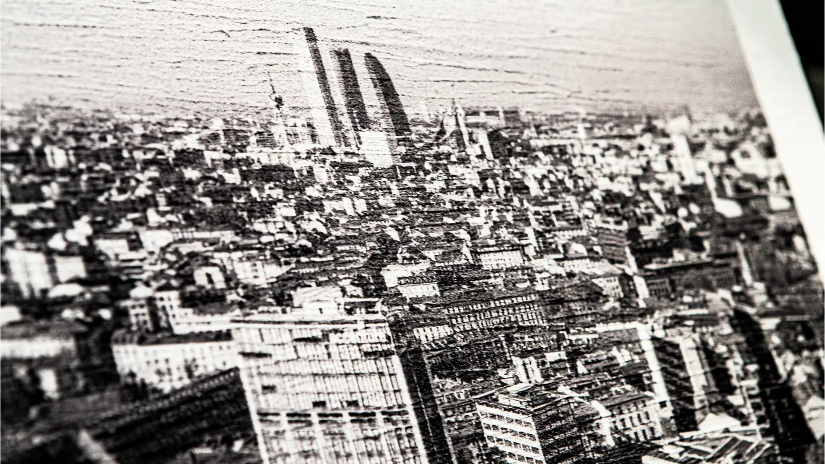 Al termine della giornata, con la luce del tramonto, Milano appare come un insieme di volumi accostati e stratificati, tanti edifici che contengono uomini e vite che si muovono come sostenuti da questa che è colonna portante della città: il cemento. Visibile e celebrato nella pianta urbana di Milano, il cemento cresce, si modella sulle esigenze dei cittadini e cambia in maniera dinamica come dinamica è la verticalizzazione rappresentata nella fotografia.