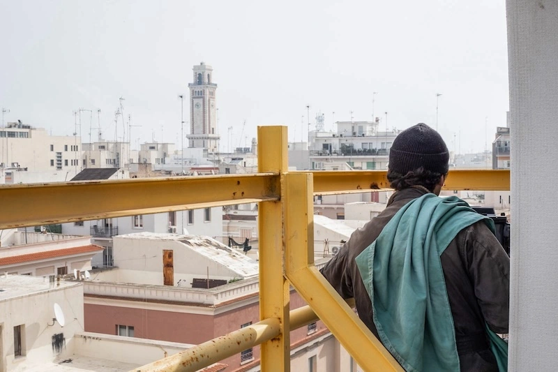 Realizzato al tramonto nel porto di Bari , lo scatto è dominato da un silo alto 32 metri di cemento decorato dal lavoro dello street artist Guido van Helten che nel 2024 è stato chiamato dalla città pugliese a eseguire una monumentale opera di celebrazione della storia millenaria di Bari. La fotografia si concentra sul dettaglio dell’opera realizzata sulle antiche strutture di stoccaggio ritraendo il volto umano di un pescatore le cui rughe d’espressione raccontano di una umanità intera evocata attraverso il lavoro. Il porto è animato da gru e argani ma per precisa scelta stilistica del fotografo il mare lo si può solo immaginare, la sua presenza è “fantasmatizzata”, smaterializzata, trasformando l’ambiente in un luogo di memoria prima ancora che di attività.